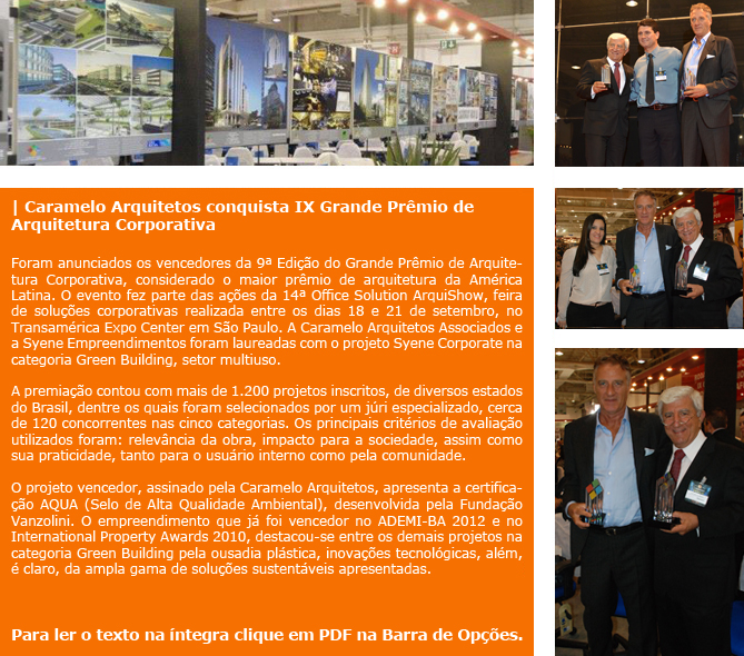 Caramelo Arquitetos Associados traz prêmio internacional para o Brasil