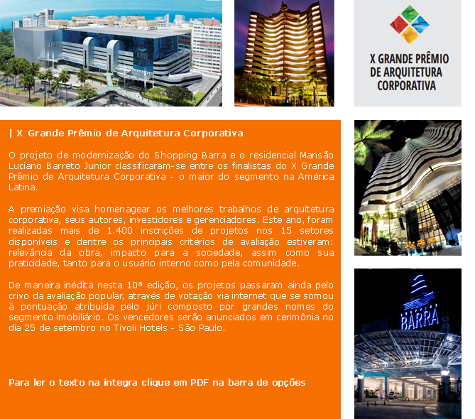 Shopping Barra é premiado e reconhecido internacionalmente